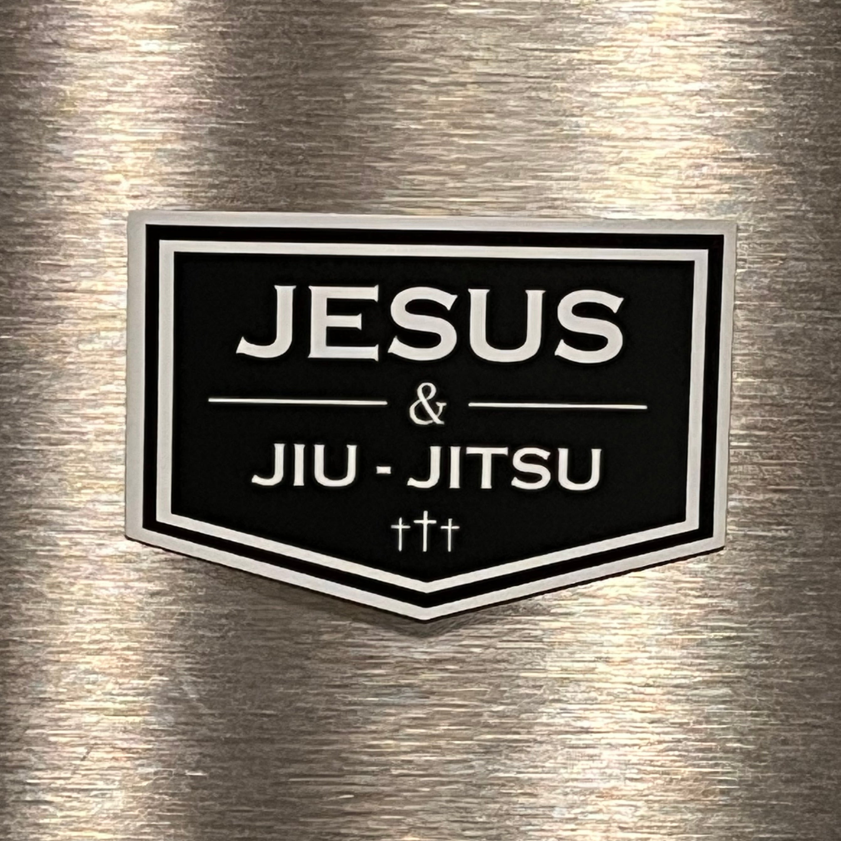 Upgrade any magnetic surface with the JJJ Magnet. Proudly display your love for Jesus and great jiu jitsu on your fridge or tailgate. A must-have for any supporter, this magnet will add a touch of spirit to your everyday life.