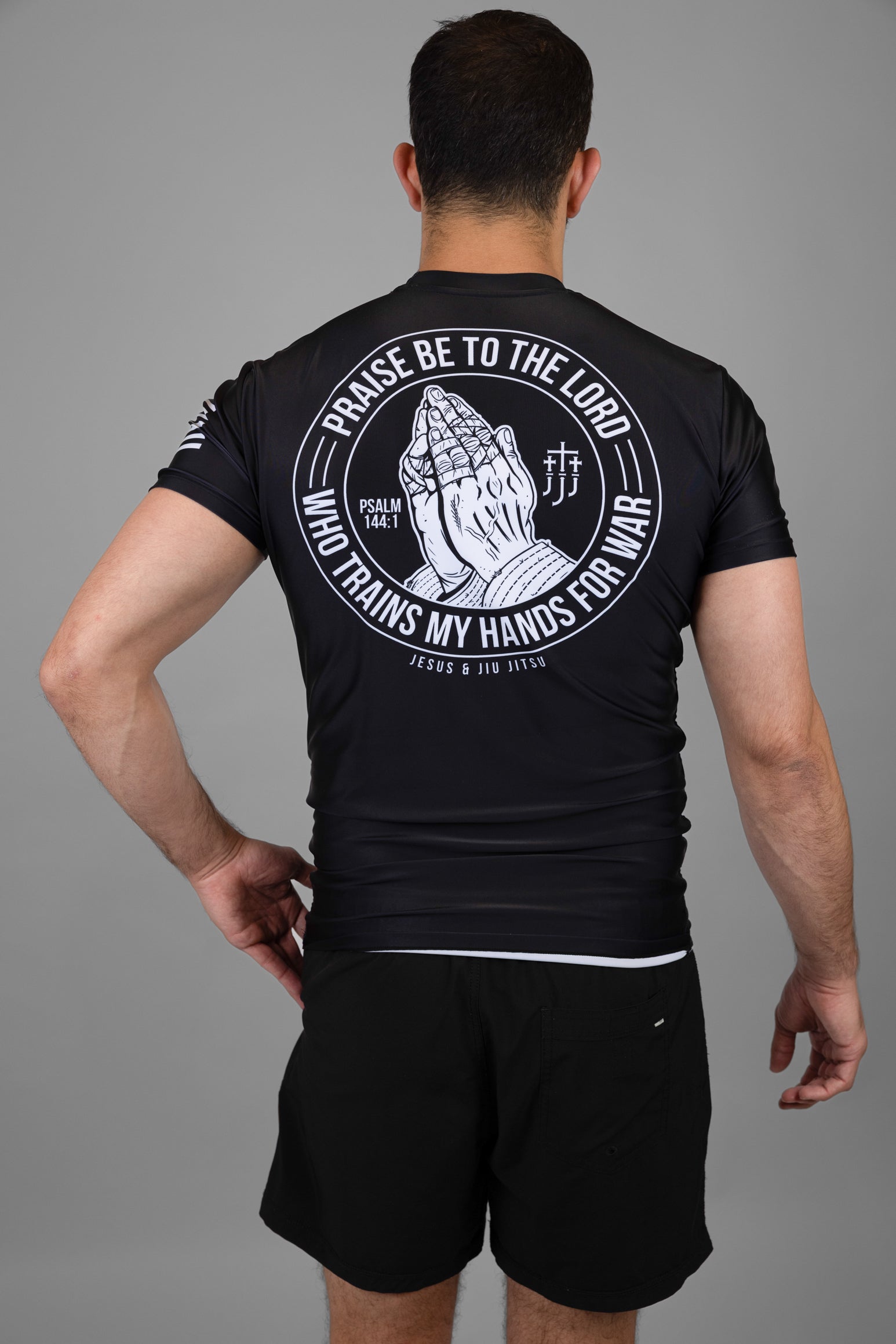 The Prayer Hands design—our most sought-after t-shirt graphic—now delivers the same bold aesthetic in rashguard form.